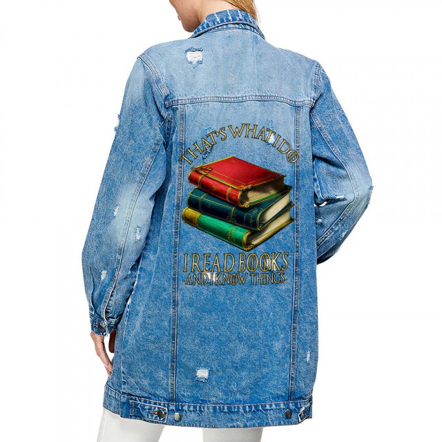 Book Lover Women’s Long Sleeve Denim Shirt – Cute Ladies Denim Shirt – Illustration Denim Shirt