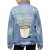 Drink Tea Read Books Be Happy Women’s Oversized Denim Jacket – Cool Ladies Denim Jacket – Unique Denim Jacket