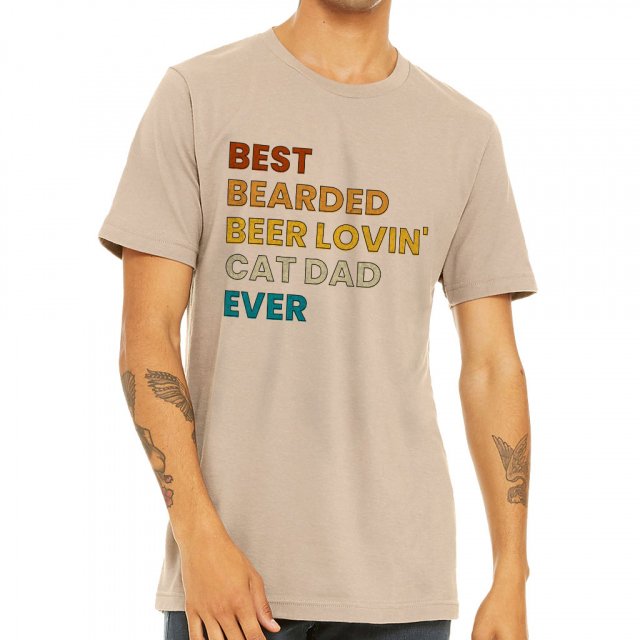 Funny Cat Dad V-Neck T-Shirt is proudly made with 7x less water than average manufacturers, in recycle-friendly facilities that also guarantee zero sweatshop conditions.