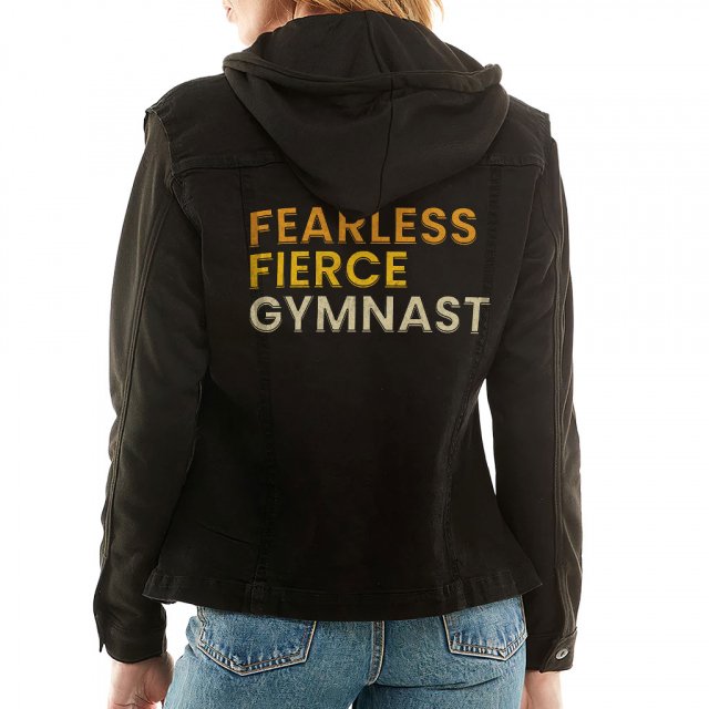 Gymnastics Quote Women’s Denim Jacket with Hoodie – Retro Ladies Denim Jacket – Cool Design Denim Jacket