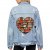 Heart Books Women’s Oversized Denim Jacket – Unique Ladies Denim Jacket – Cute Design Denim Jacket