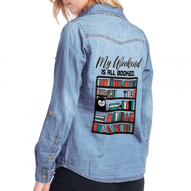 I Read Books and I Know Things Women’s Long Sleeve Denim Shirt – Trendy Ladies Denim Shirt – Themed Denim Shirt