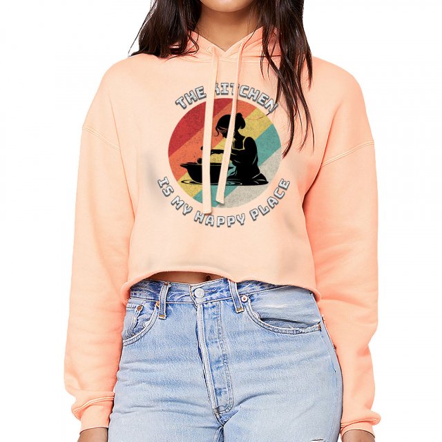 Kitchen Is My Happy Place Women’s Cropped Hoodie – Cute Cropped Hoodie – Themed Hooded Sweatshirt