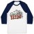 features raglan 3/4 sleeves and a modern fit that is perfect for a day