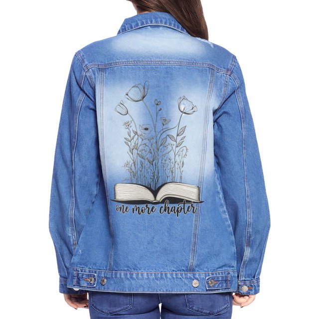One More Chapter Ladies’ Casual Denim Jacket – Book Design Women’s Denim Jacket – Flower Denim Jacket